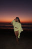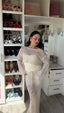 Modelo usa el Vestido Isabella lunares blanco en talla S