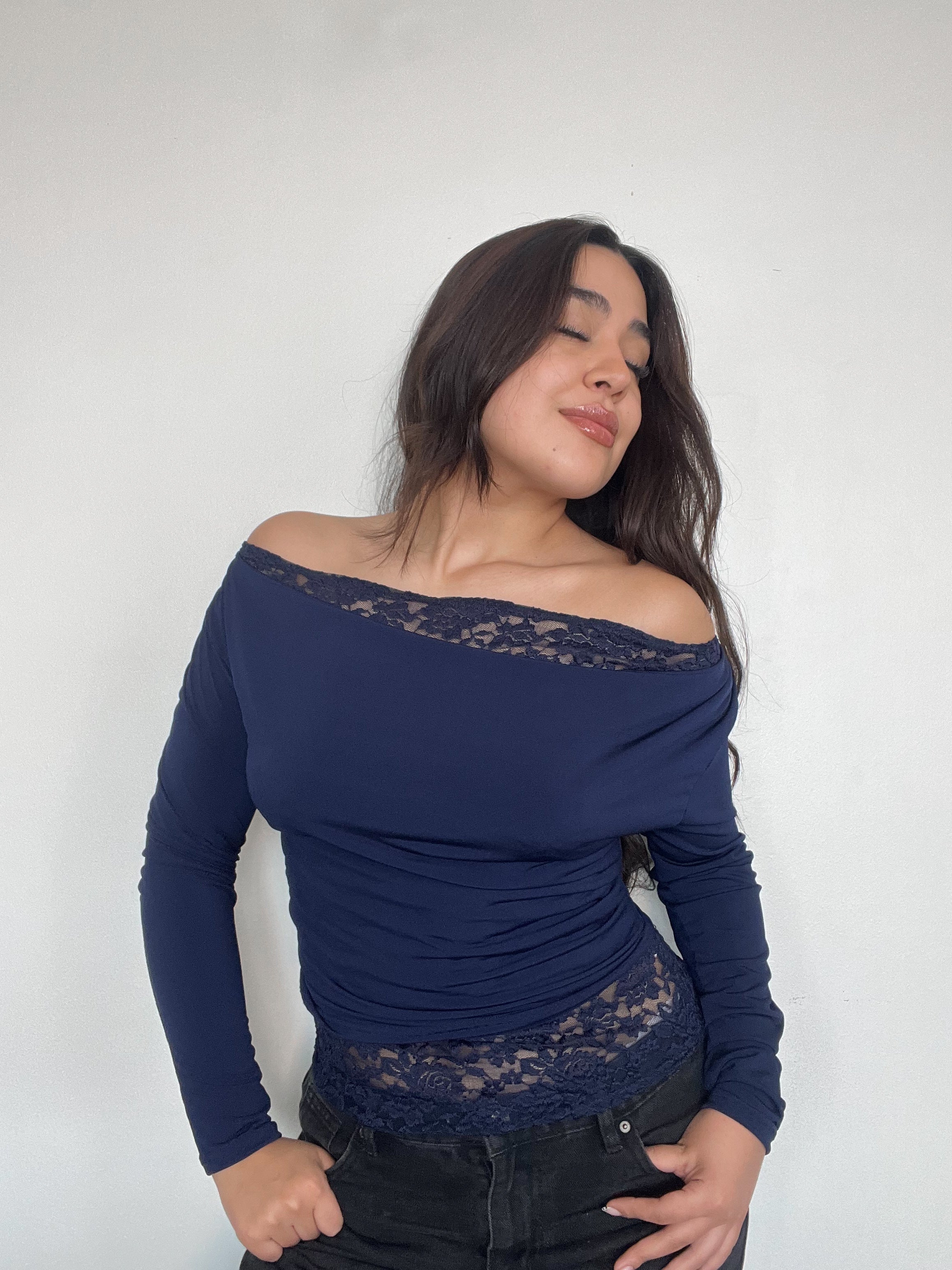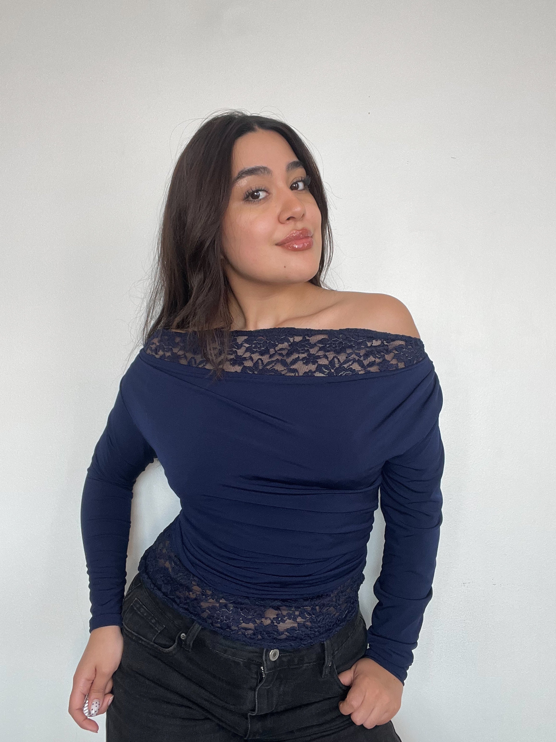 Top con detalle de encaje manga larga – comodidad y estilo en un solo diseño. Confeccionado en lycra elasticada con forro de doble tela, se ajusta perfecto al cuerpo.