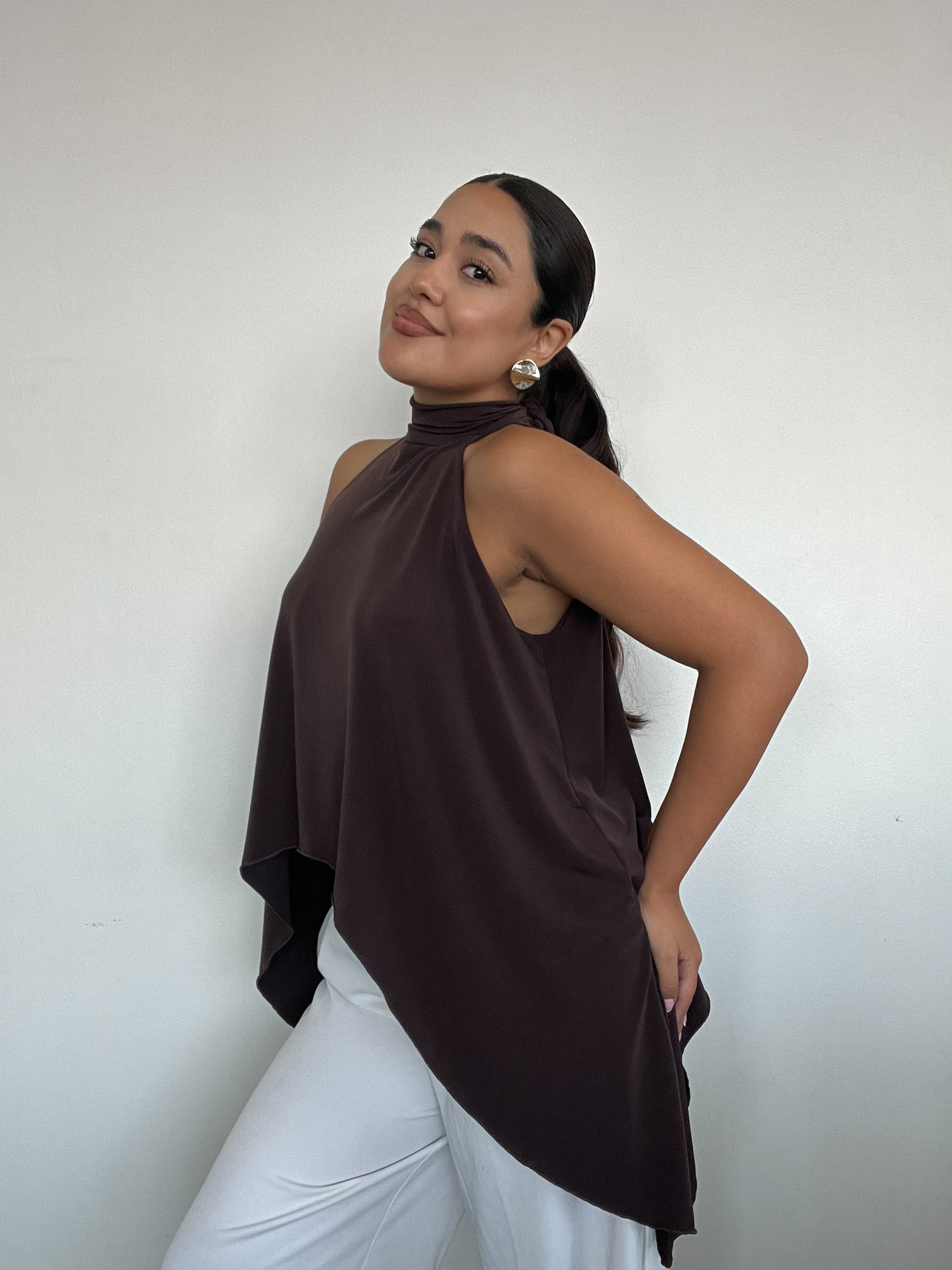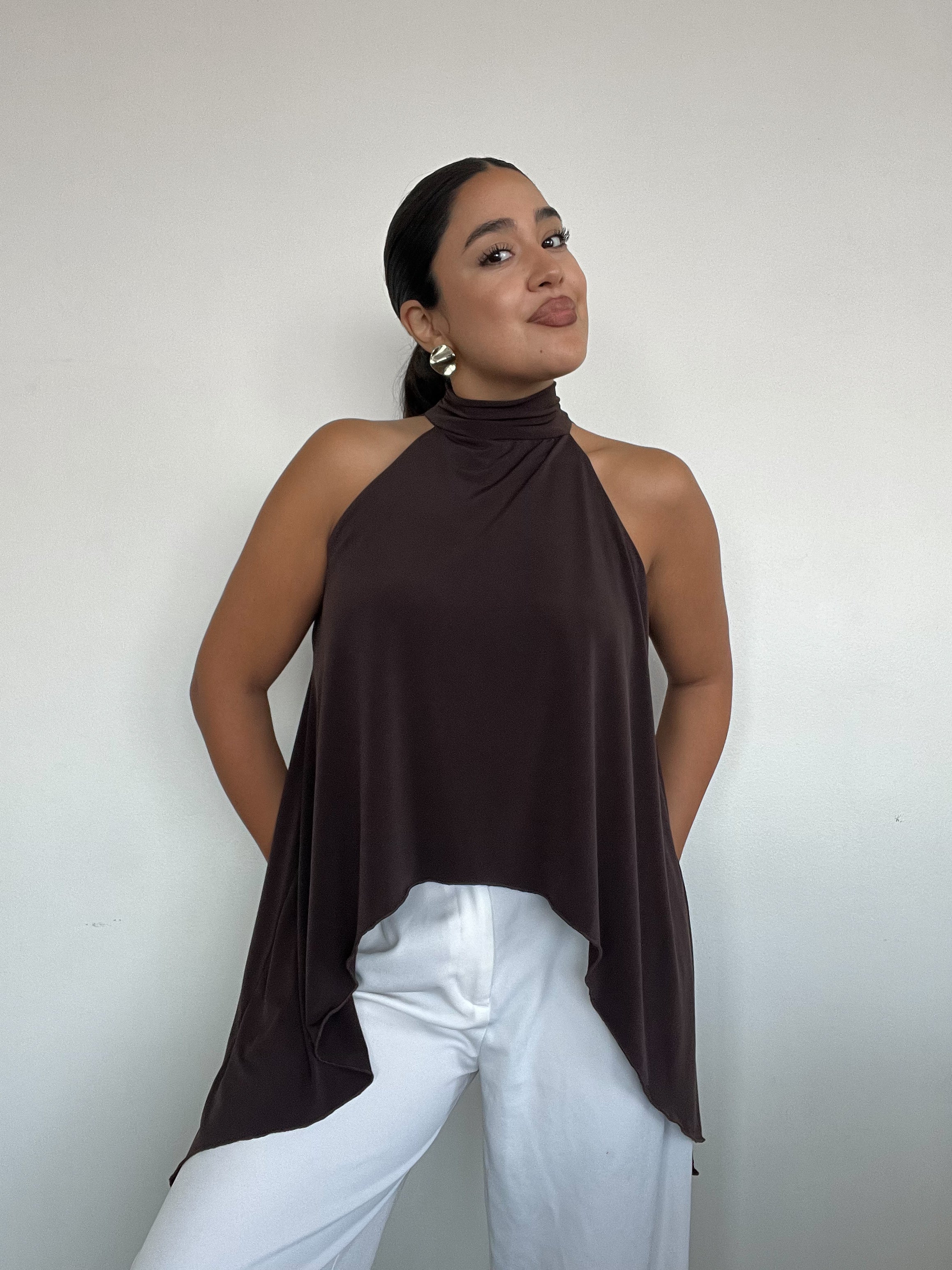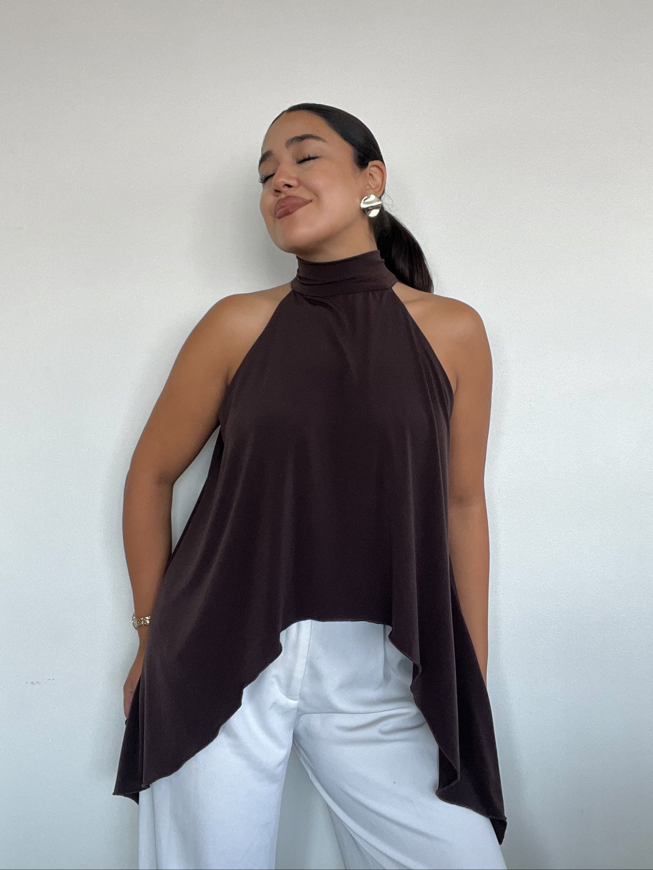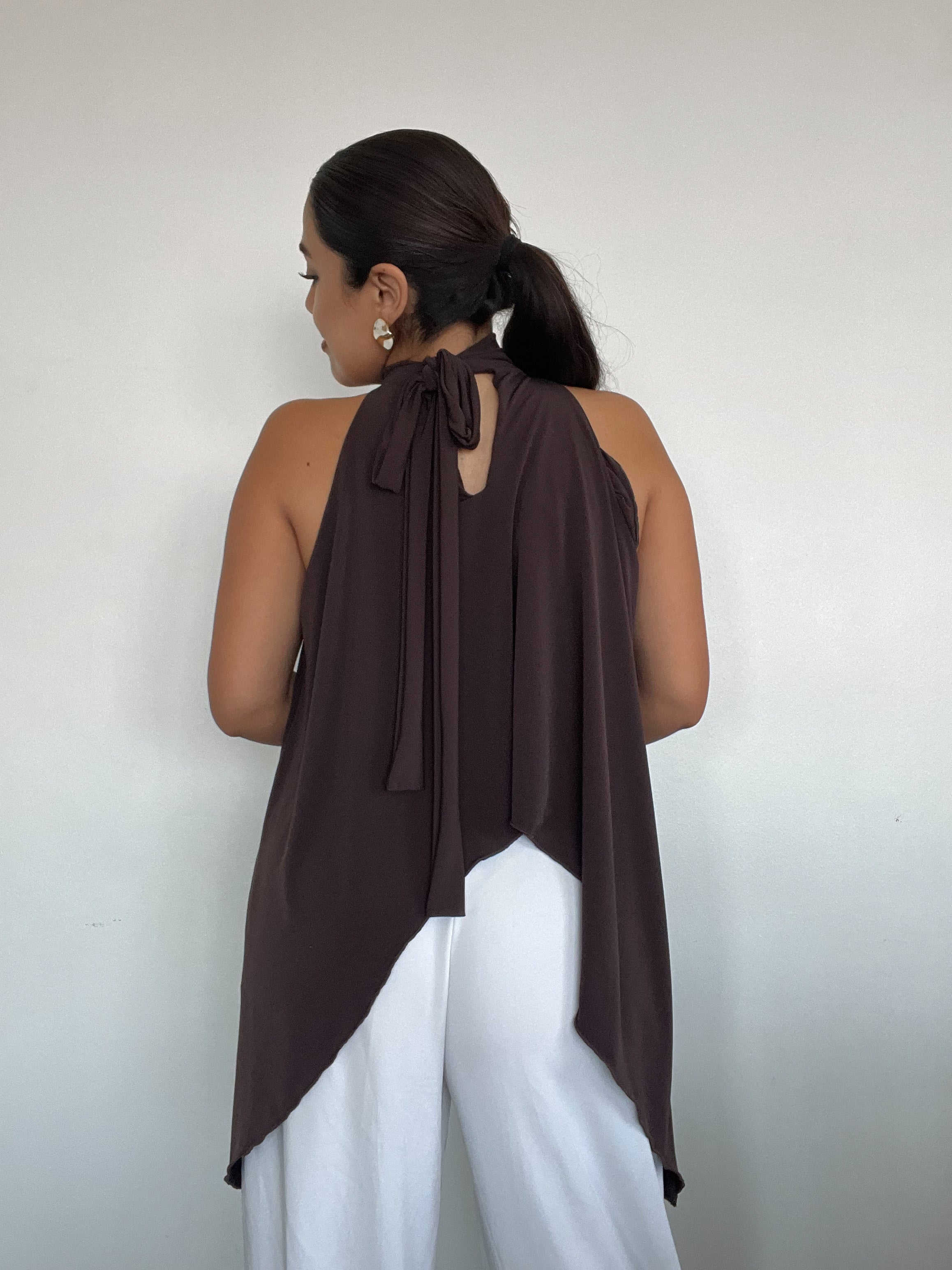 TOP HALTER CAFÉ - ESTILO CAPA CON AMARRAS