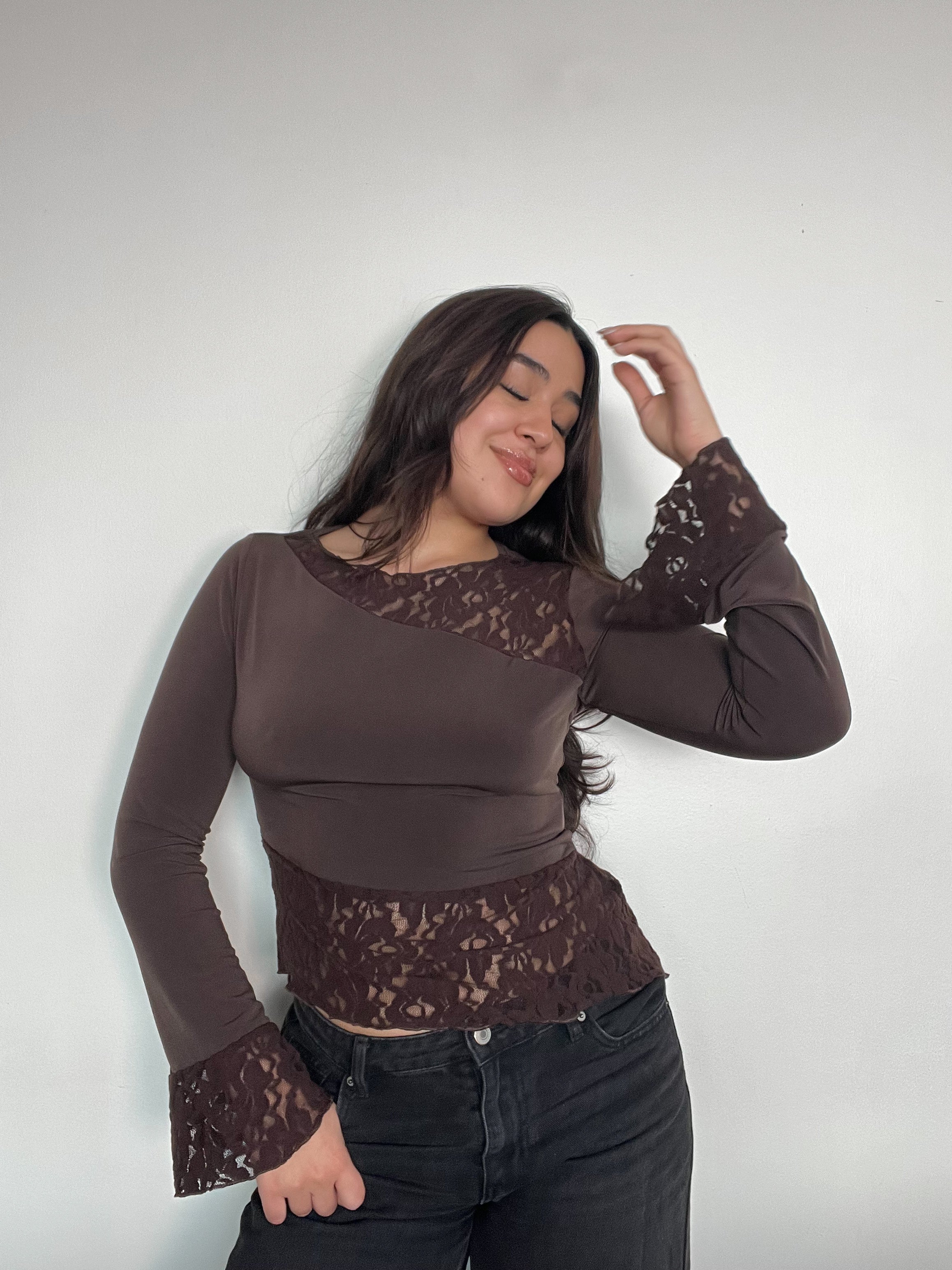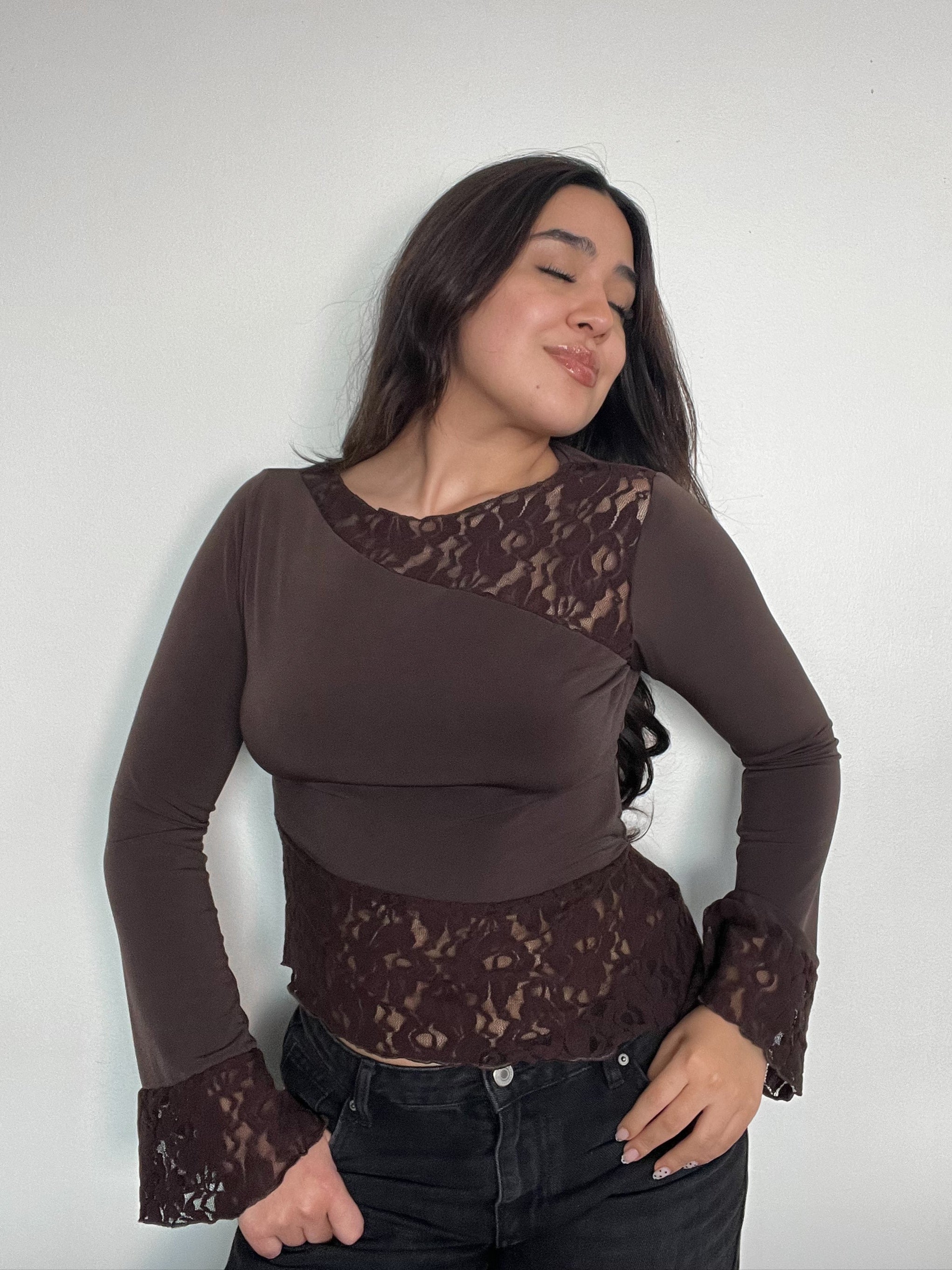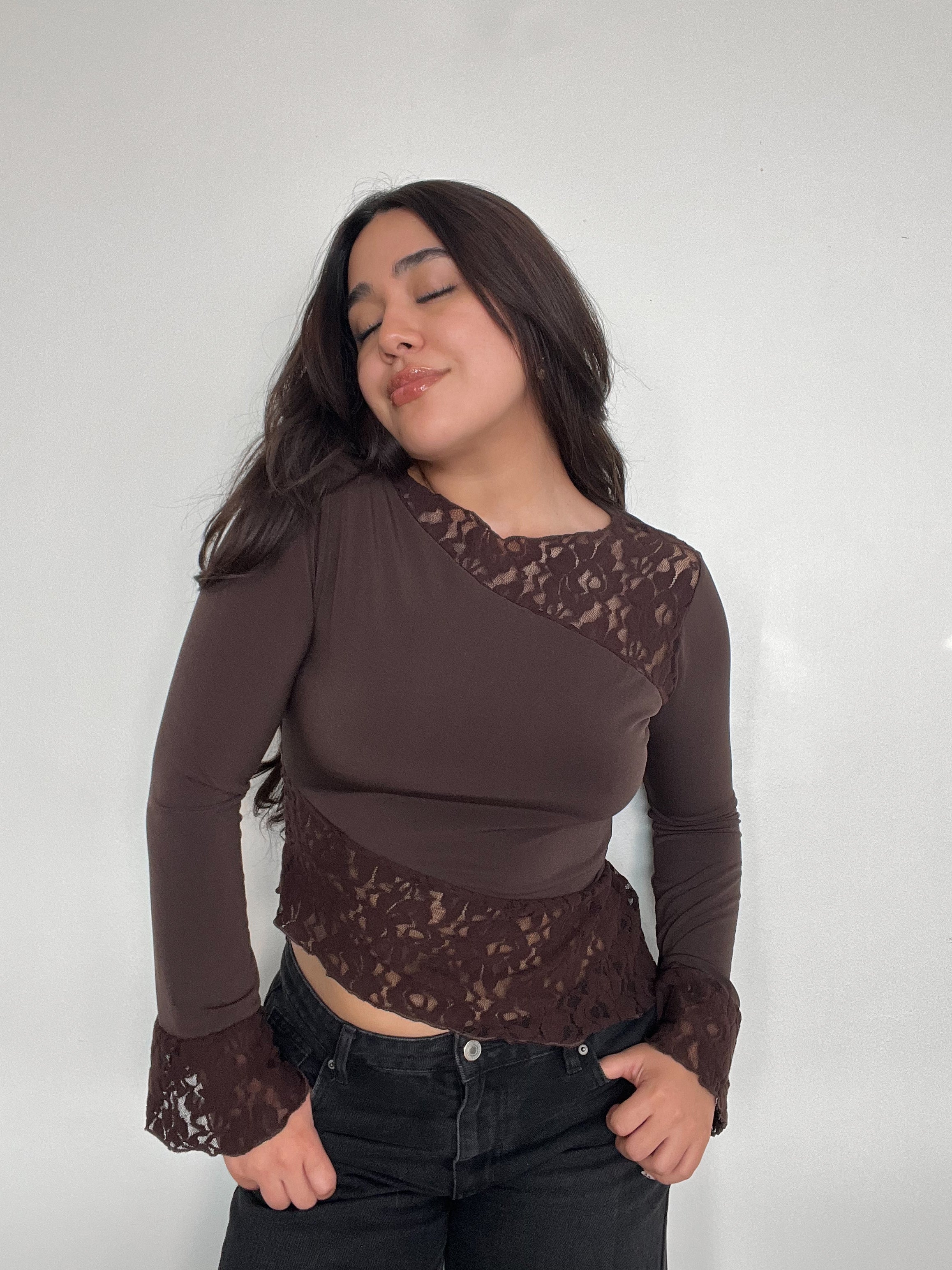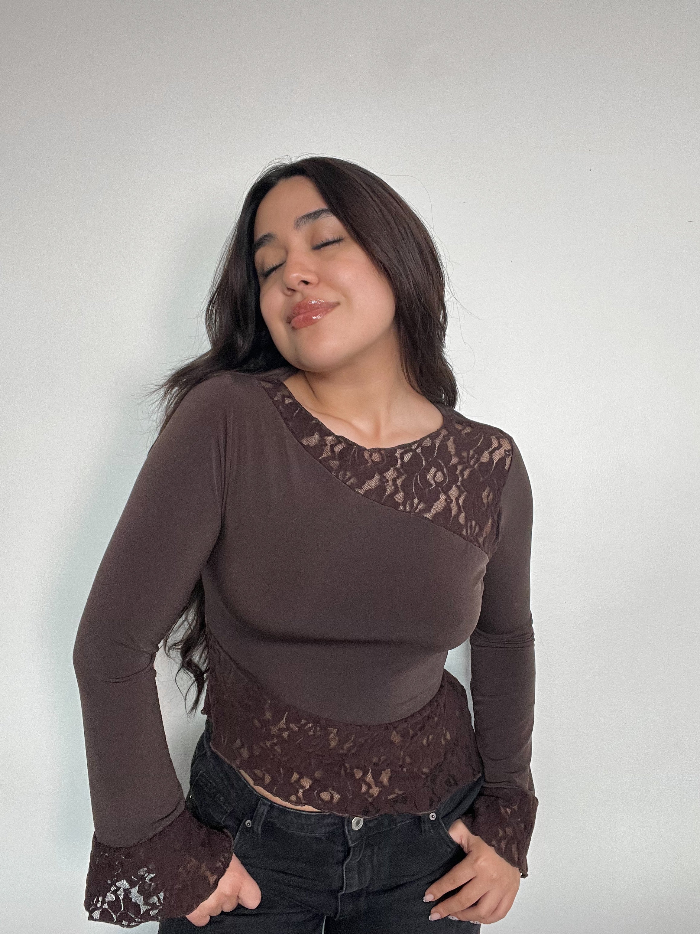 Top con detalle de encaje manga larga – comodidad y estilo en un solo diseño. Confeccionado en lycra elasticada con forro de doble tela, se ajusta perfecto al cuerpo.